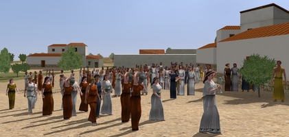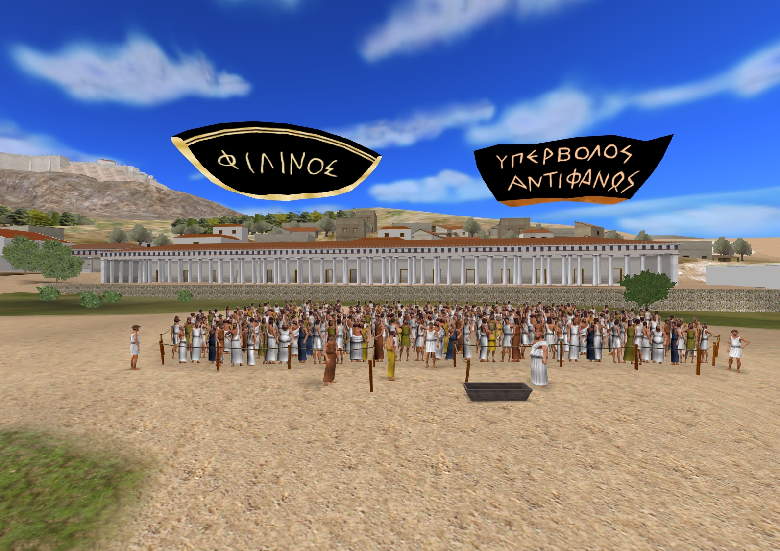 they follow the Panathenaea procession and take part in the vote of ostracism of 416 BC. In the Hellenistic