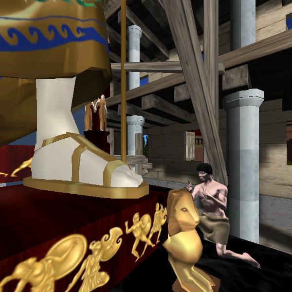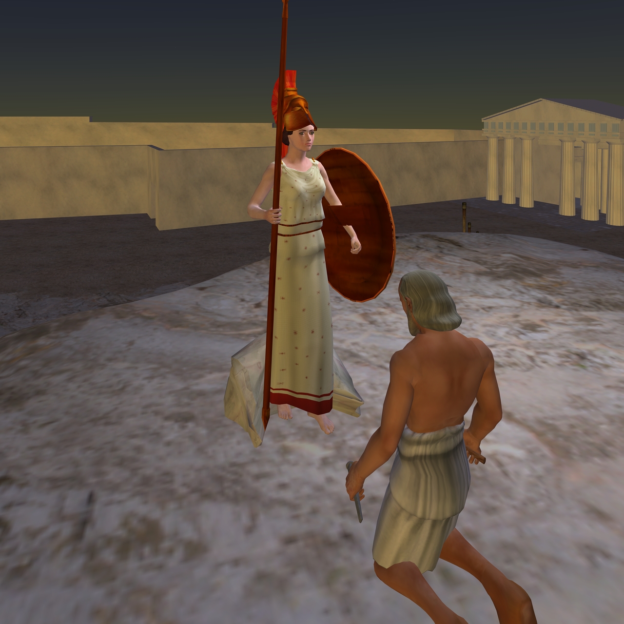 With the help of the goddess Athena, which rises from a rock, the spectators are transported into the