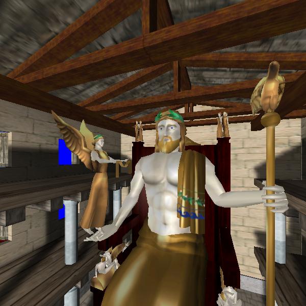 το ξακουστό άγαλμα του Δία και τα εργαλεία του γλύπτη. Kατά τη διάρκεια του