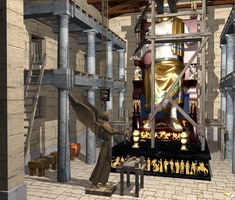 Φειδία στην Ολυμπία. Ο χώρος του εργαστηρίου περιλαμβάνει -σε πιστή αναπαράσταση-